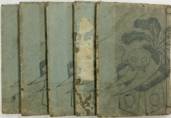 立川焉馬作 歌川国直画 全五巻揃(初編 以降未刊) 半紙本 原装(鼠と大根柄) 簽ほぼ欠(巻二少存) 少朱書入 文政12年刊 住吉屋弥三郎他板 5冊